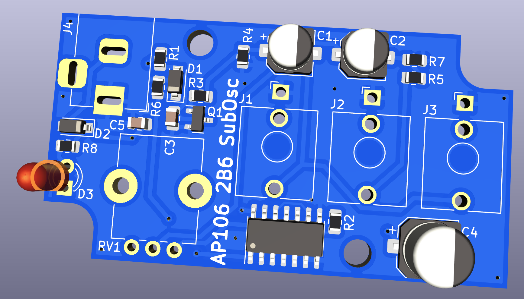 Currently in prototype, but available soon, a sub-oscillator that divides the input frequency by 2 or 4 (1 or 2 octaves) and allows a mix of those on the output. The output can be fed back into the synthesiser chain to add big bass harmonics to a signal. With a mix control and input, output and through jacks (3.5mm ideal for synth patch cables. Powered from a guitar pedal power supply (9v DC, +ve on outer). Specifications / features